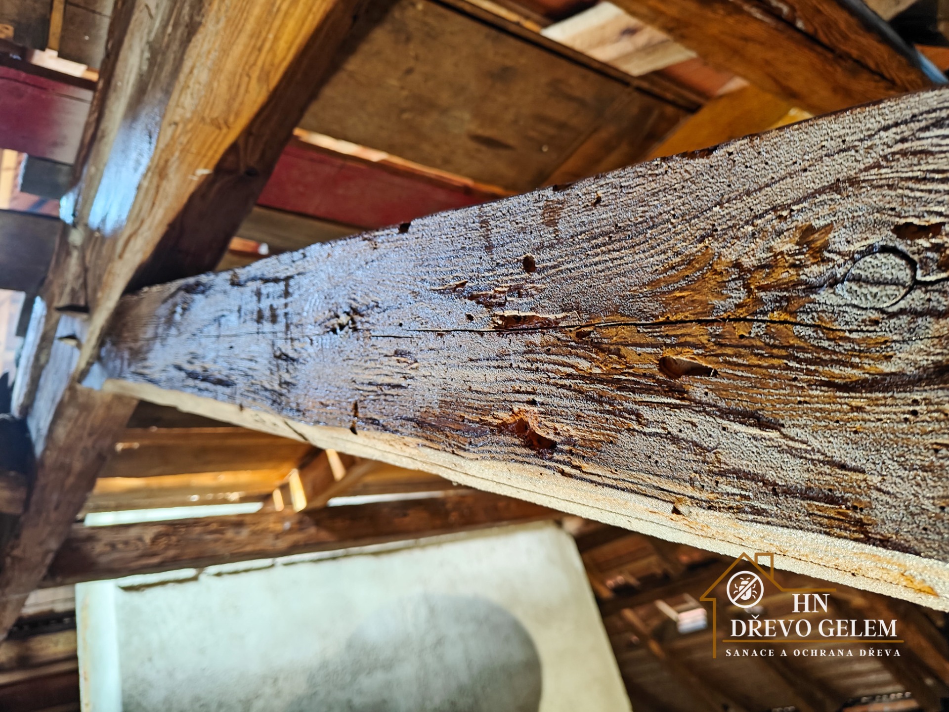 - Likvidace tesaříka, červotoče i dřevokazných hub